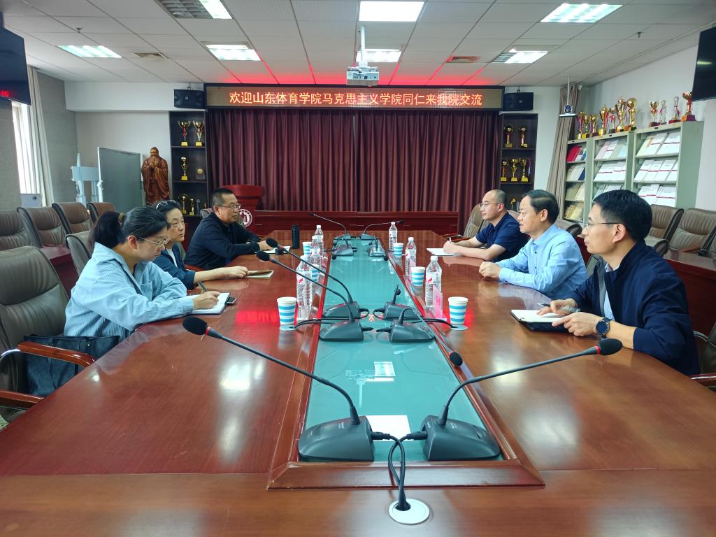 9月25日下午,山东体育学院马克思主义学院院长钱芳一行3人莅临我院交流座谈,学院院长孙迪亮、副院长任松峰、毛泽东思想与中国特色社会主义理论体系概论教研室主任王安忠参加座谈。