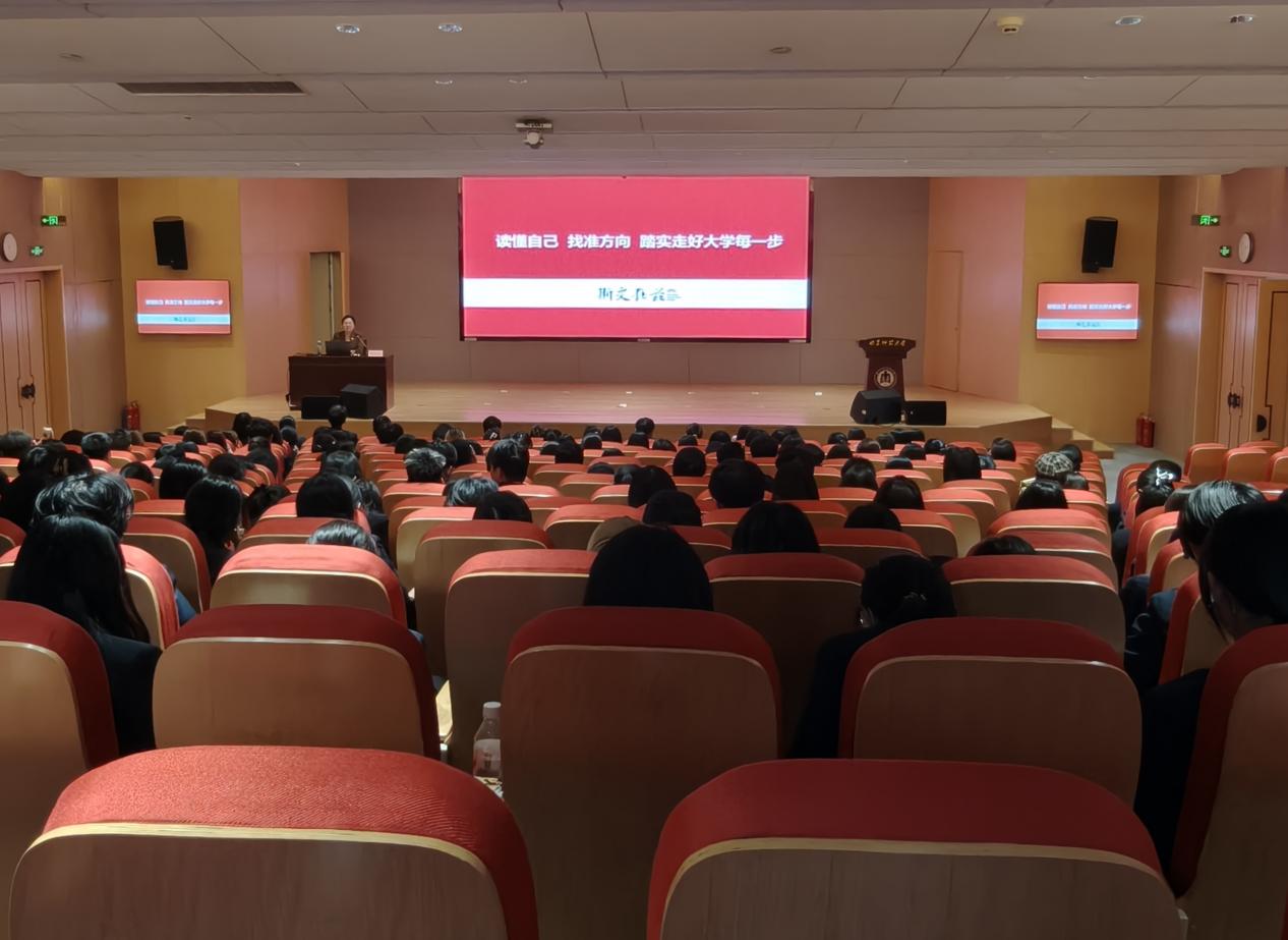 姜美颖以《读懂自己,找准方向,踏实走好大学每一步》为题,通过分析回答“我是谁、我要去哪里、我如何行走”三个问题,对学生的学业规划提供了清晰明了且契合需求的专业指导。报告会中,姜美颖融合理论讲解与案例剖析,从看清自我优缺点,合理规划短、中、长期目标,解读专业价值,落实具体行动等多个维度为同学们提出建议。最后,她鼓励同学们积极主动沟通、找准选择路径、扎实学习与职业准备,从而建立自我社会系统,做好真正的社会人。
