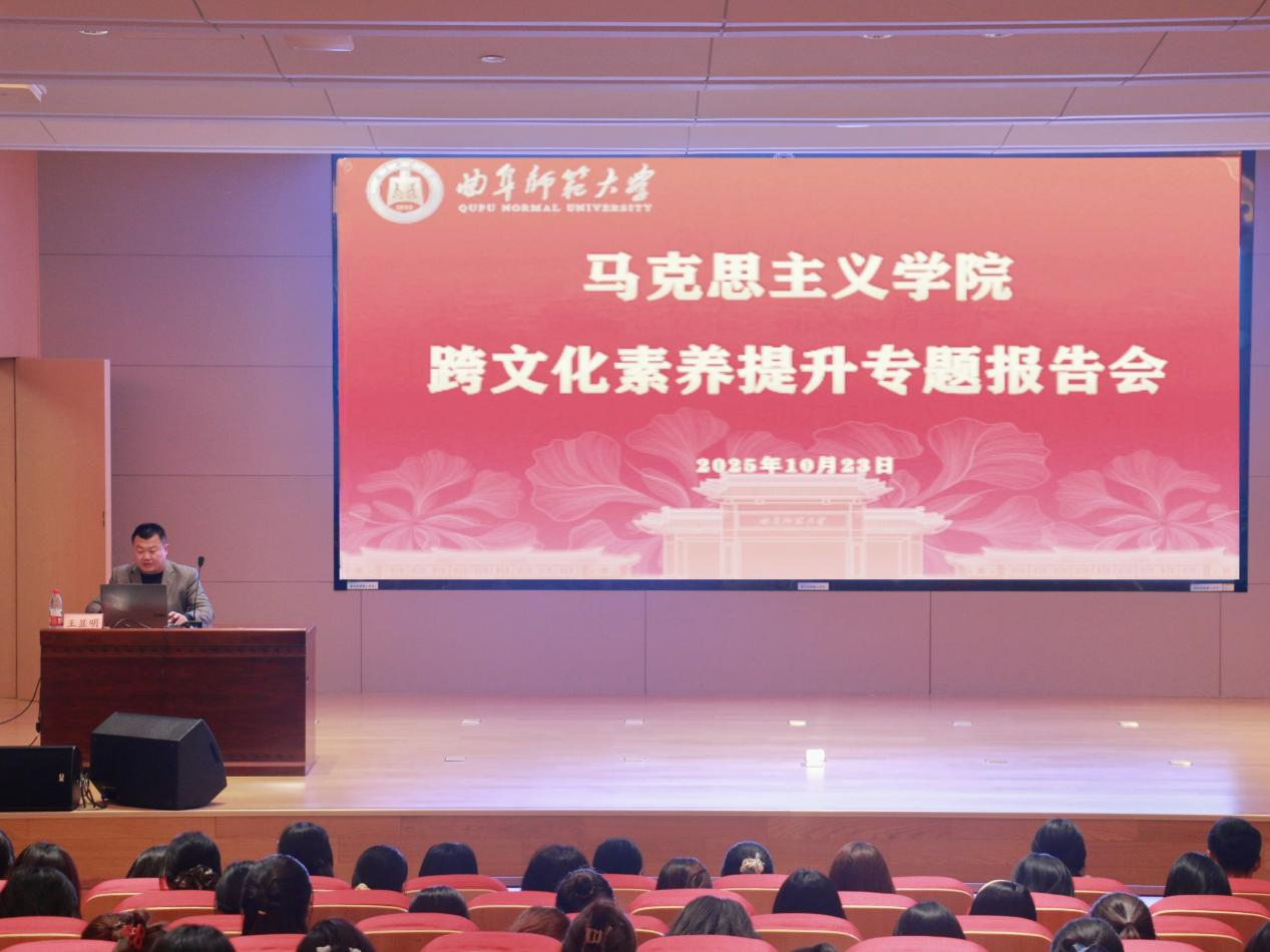 为提升学生外语能力与国际素养,培养新时代高素质人才,10月23日下午,马克思主义学院于西校区图书馆报告厅举办跨文化素养提升专题报告会。本次报告会特邀学校公共外语教学部副主任、教材建设委员会主任、山东省国外语言学学会大学外语教育专业委员会理事王显明副教授担任主讲,由学院团委书记、2025级新生辅导员张林主持,全体2025级本科生及研究生代表参加。