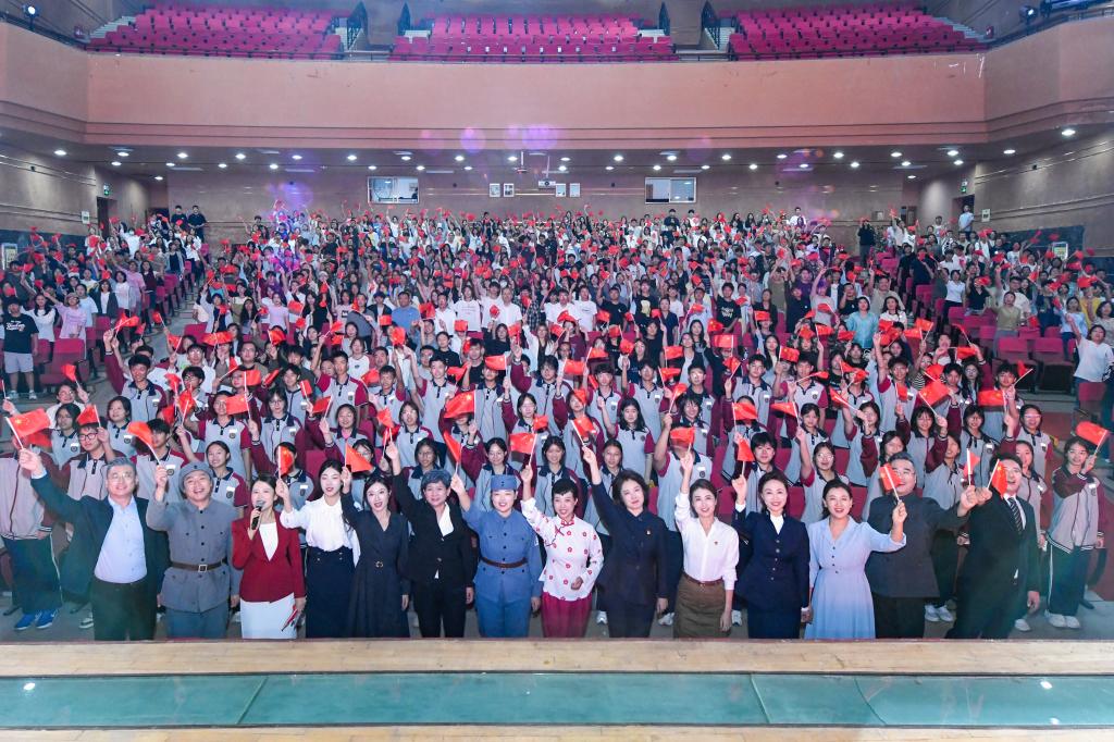 活动尾声,伴随着激昂的旋律响起,全场师生起立共同唱响《歌唱祖国》。“五星红旗迎风飘扬,胜利歌声多么响亮……”,嘹亮的歌声唱出了对祖国的无限热爱,将现场气氛推向高潮。